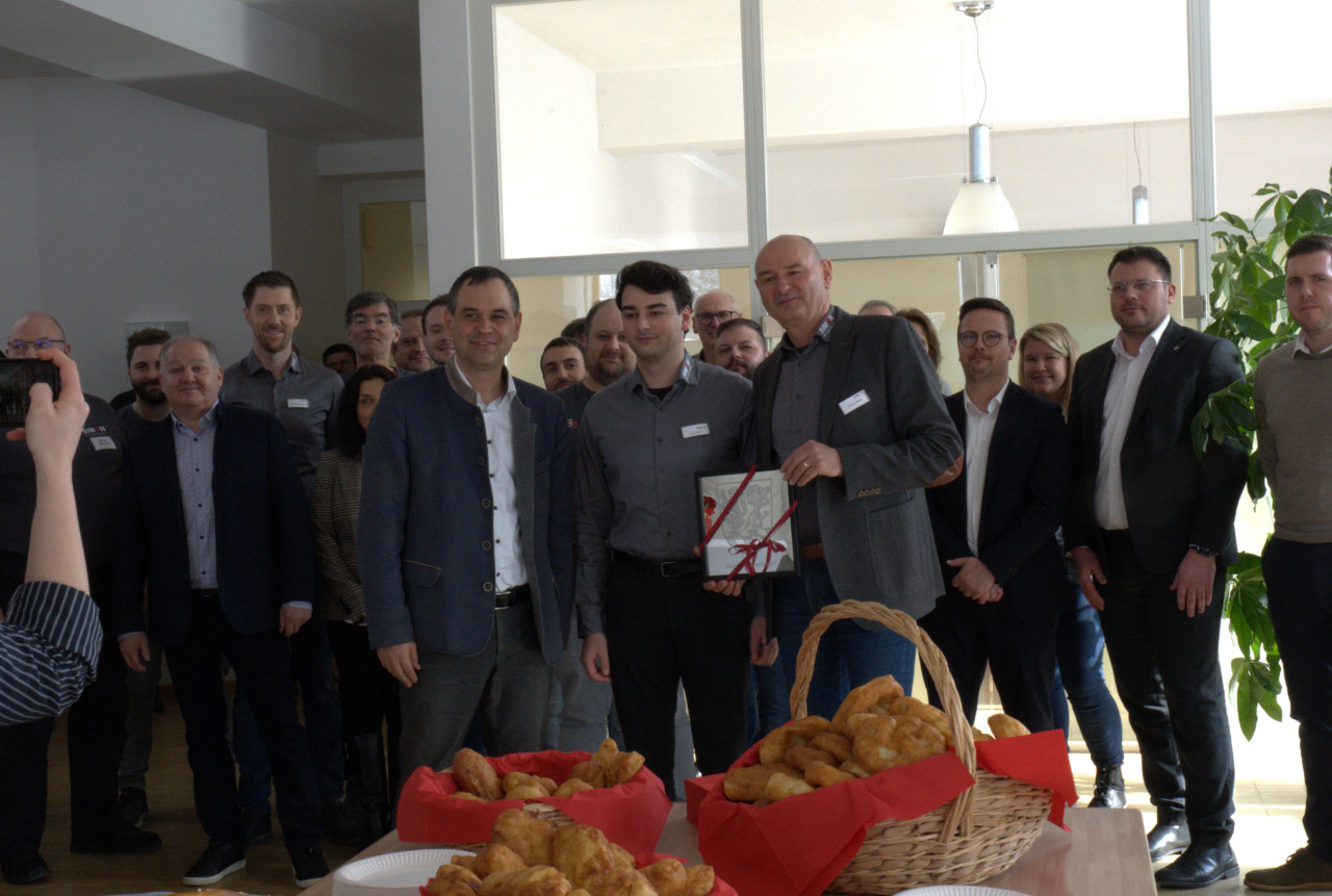 Dem Anlass gebührend wurden die Feierlichkeiten kurzerhand auf einen ganzen Jubiläumstag ausgedehnt, der mit einem Tag-der-Offenen Tür am Firmenhauptsitz in Passau startete. Zahlreiche Angehörige unserer Mitarbeiter, regionale und überregionale Partner, Kunden und Lieferanten fanden den Weg in die tiefverschneite Medienstraße und erhielten einen Einblick in unsere tagtägliche Geschäftstätigkeit. Die Besucher konnten dabei am eigenen Leib miterleben, was es heißt, bei SIMON PROtec zu arbeiten und gleichzeitig eine wichtige Zutat für das Erfolgsrezept einer 50-jährigen Firmengeschichte kennenlernen: Mitarbeiterinnen und Mitarbeiter, die mit Leidenschaft und Herzblut, mit Zielstrebigkeit und Spaß an der Arbeit ihrer Tätigkeit nachgehen und dabei den vormaligen Firmenslogan „Begeisterung trifft Technik" jeden Tag in die Praxis umsetzen.