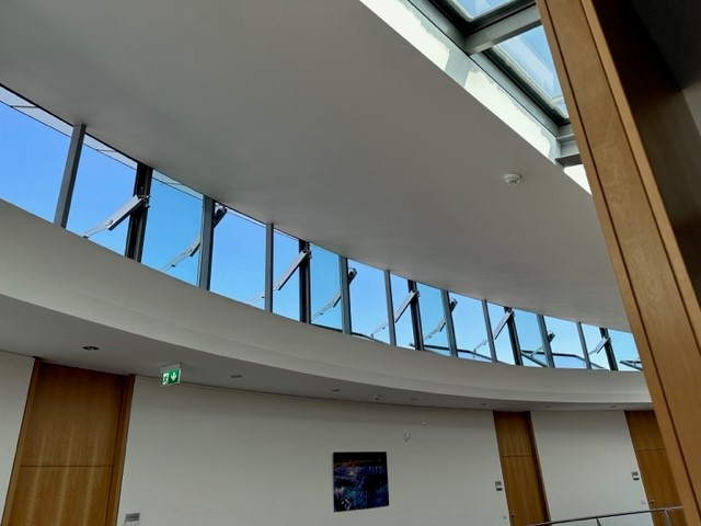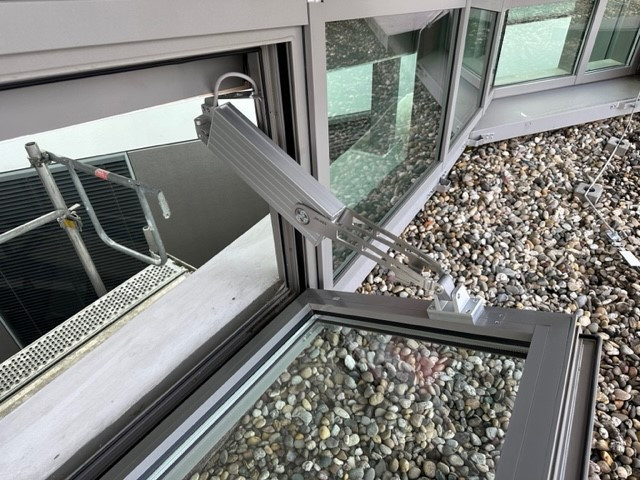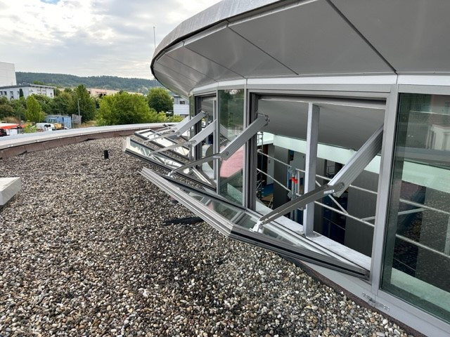 Das Berufsbildungszentrum Stuttgart-Herrenberg verspricht Ausbildung auf höchstem Niveau - und wir von SIMON PROtec sorgen für höchste Sicherheit beim Brandschutz: Im Auftrag der Deutschen Vermögensberatung AG durften wir die RWA-Baugruppen sanieren. Ein Projekt mit vielen spannenden Facetten: Für das Atrium wurden 14 RWA-Klappen im Fassadenbereich nachgerüstet. Die ideale Lösung: Der Klapparm² PA-KL². Die Antriebe sind dank der innovativen SICO-Bus-Technologie voll synchronisiert und gleichen ihre Laufgeschwindigkeiten in Echtzeit ab.